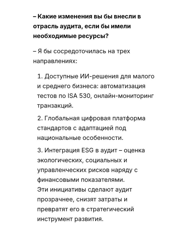 — Аудит часто воспринимают как скучную и рутинную профессию, связанную лишь с проверкой цифр и отчетности. Но на деле это сложная и стратегически важная работа, от которой зависит прозрачность компаний, доверие инвесторов и устойчивость финансовых систем.