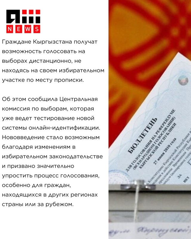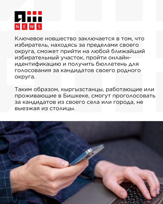Ключевое новшество заключается в том, что избиратель, находясь за пределами своего округа, сможет прийти на любой ближайший избирательный участок, пройти онлайн-идентификацию и получить бюллетень для голосования за кандидатов своего родного округа. Таким образом, кыргызстанцы, работающие или проживающие в Бишкеке, смогут проголосовать за кандидатов из своего села или города, не выезжая из столицы.