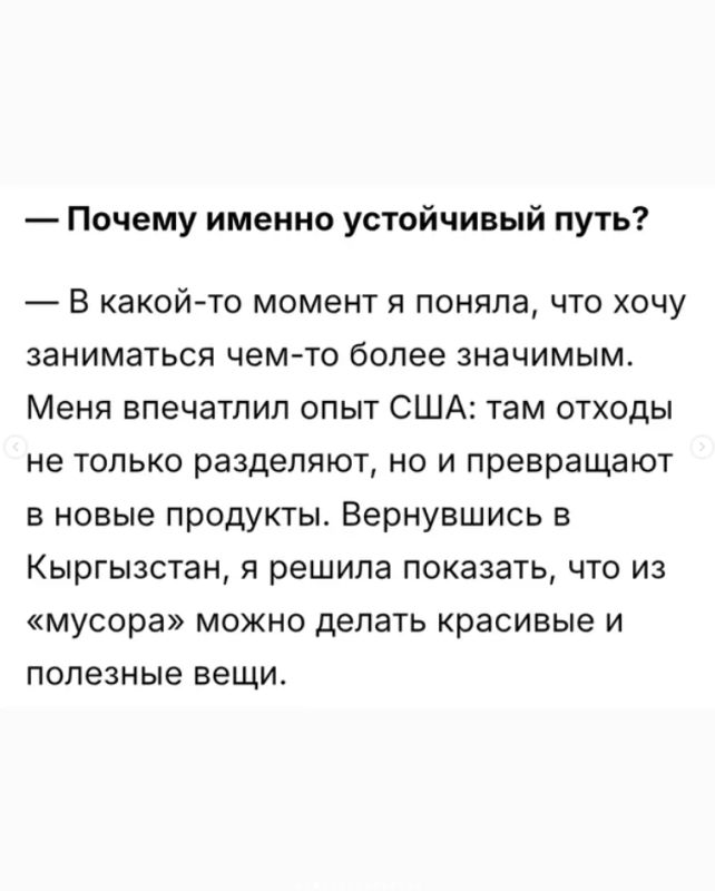 — Как из пластиковых и текстильных отходов рождаются дизайнерские изделия? Почему «зеленый» бизнес в Кыргызстане сталкивается с барьерами? И что даст климатический закон предпринимателям? Об этом мы поговорили с Чинарой Султаналиевой, экоактивисткой и соосновательницей фонда «ЭкоФем» и проекта UpKel.
