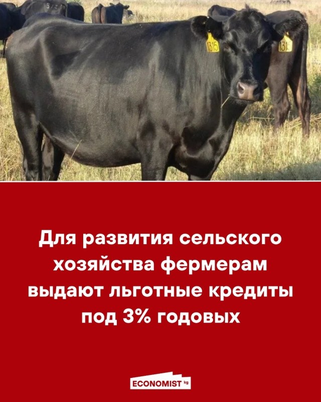 — Для поддержки крестьянских и фермерских хозяйств в Кыргызстане предусмотрена выдача льготных кредитов под 3% годовых сроком на 5 лет с льготным периодом 6 месяцев. Об этом напомнили в Минсельхозе.