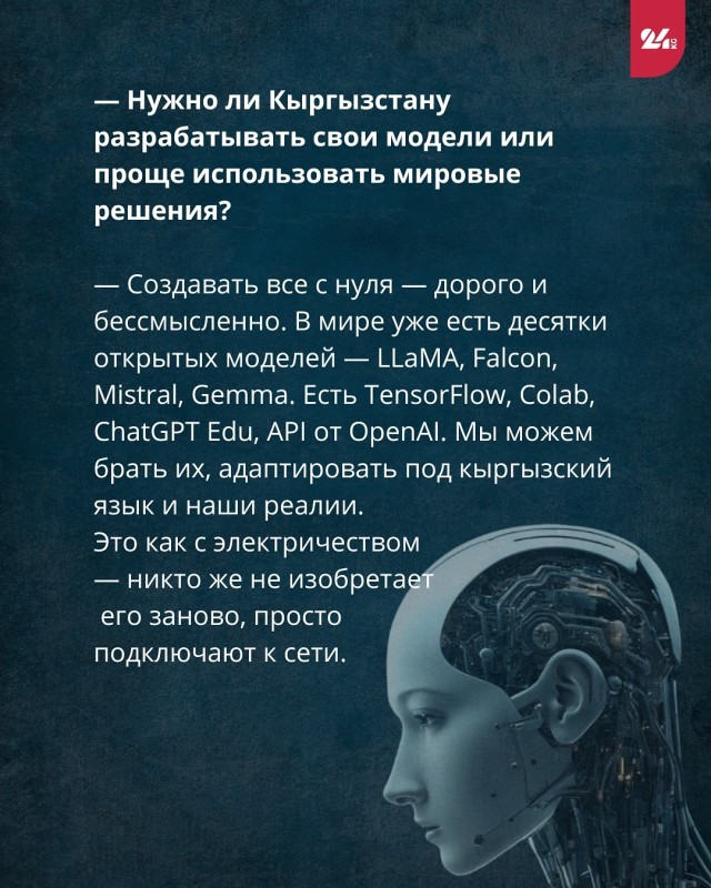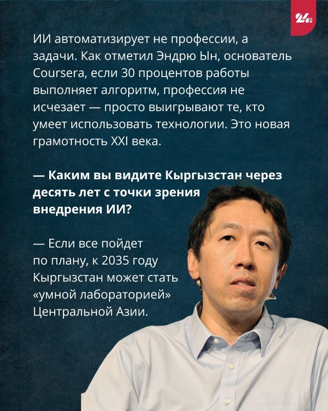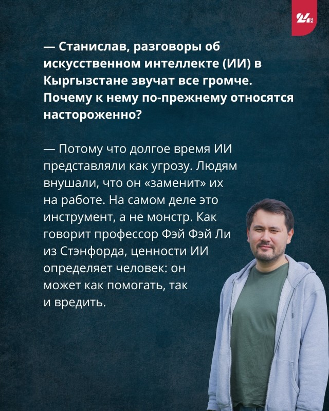 Искусственный интеллект уже перестал быть диковинкой — он меняет рынок труда, образование и государственные сервисы. Мир стремительно перестраивается под новые технологии, а Кыргызстан только подходит к этой точке. Как не отстать, превратить ИИ из угрозы в союзника и что нужно делать уже сегодня? Об этом — в интервью 24.kg со специалистом по ИИ и цифровым коммуникациям Станиславом Ли.