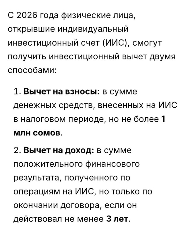 — В Налоговом кодексе Кыргызстана появился новый вид вычета по подоходному налогу — инвестиционный вычет. Об этом говорится в законе «О внесении изменений в некоторые законодательные акты в сфере налогообложения».