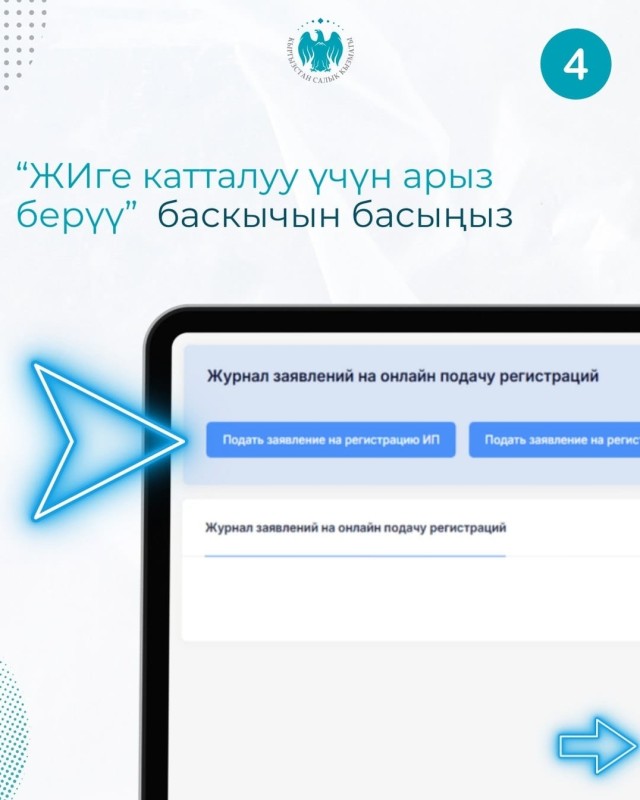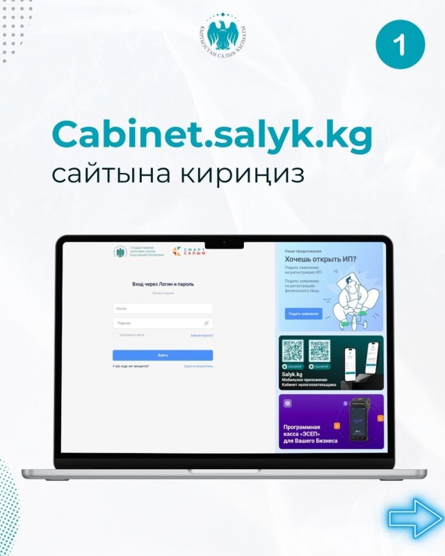 — Налоговая служба КР представила визуальное руководство, которое показывает, как открыть ИП дистанционно на портале cabinet.salyk.kg. Инструкция демонстрирует весь процесс — от входа в систему до проверки статуса заявления.