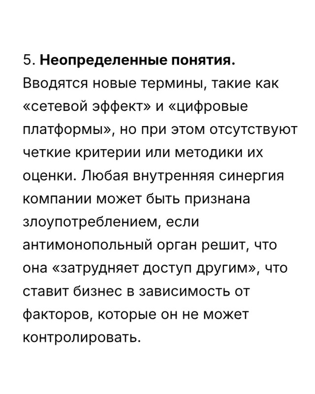 Бизнес считает, что законопроект смещает баланс в сторону государства, усиливая контроль и вводя нечеткие правила. Документ содержит много общих формулировок, оценочных норм и отсылок на подзаконные акты. Это создает правовую неопределенность и дает антимонопольному органу широкий простор для толкования.