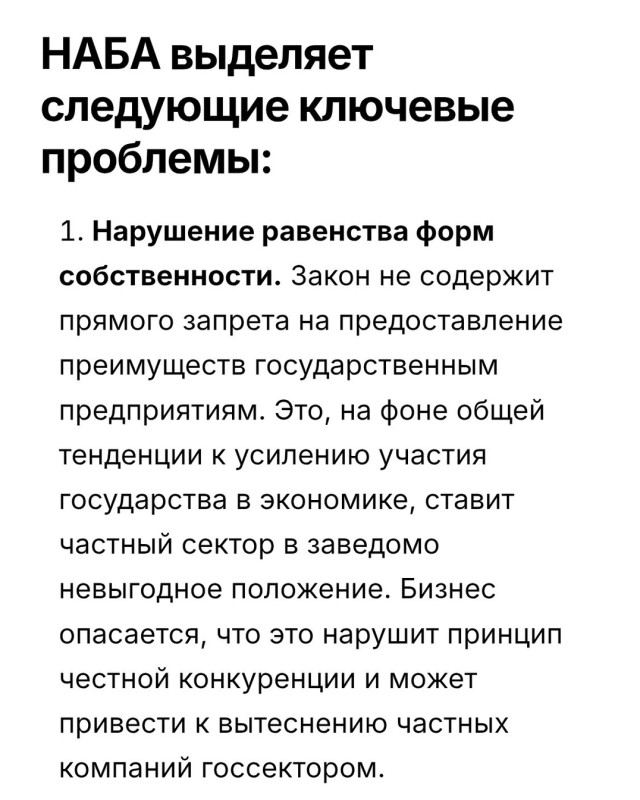 НАБА поддерживает шаги правительства КР по улучшению инвестклимата, но отмечает, что проект закона «О конкуренции» вызывает серьезную обеспокоенность. В обращении указано, что кабмин не соблюдал собственную методику АРВ, утвержденную постановлением № 444 от 10 августа 2022 года.