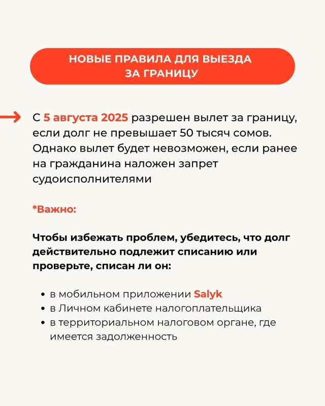 Согласно принятому закону от 31 июля 25 года в Кыргызстане списываются налоговые задолженности и определяется новый минимальный порог долга для вылета заграницу