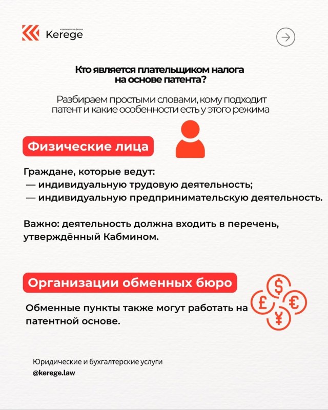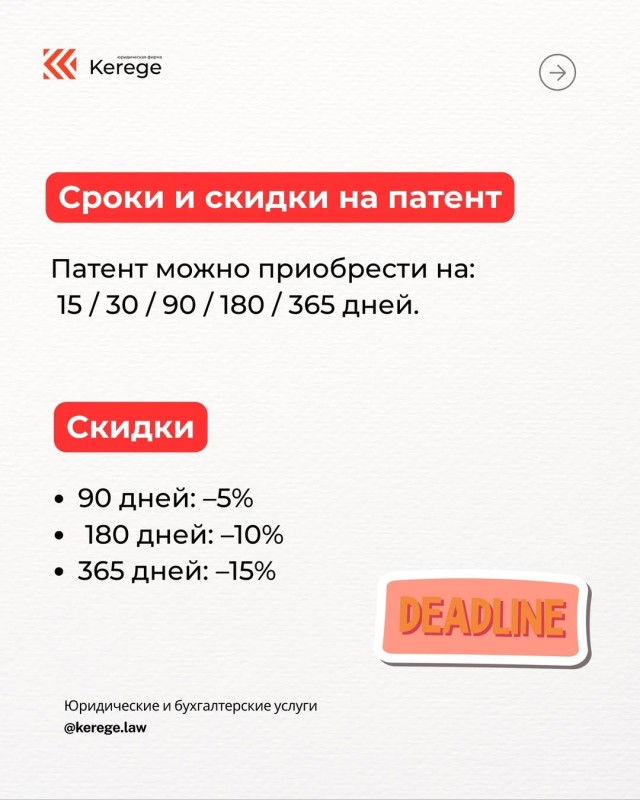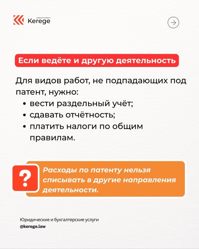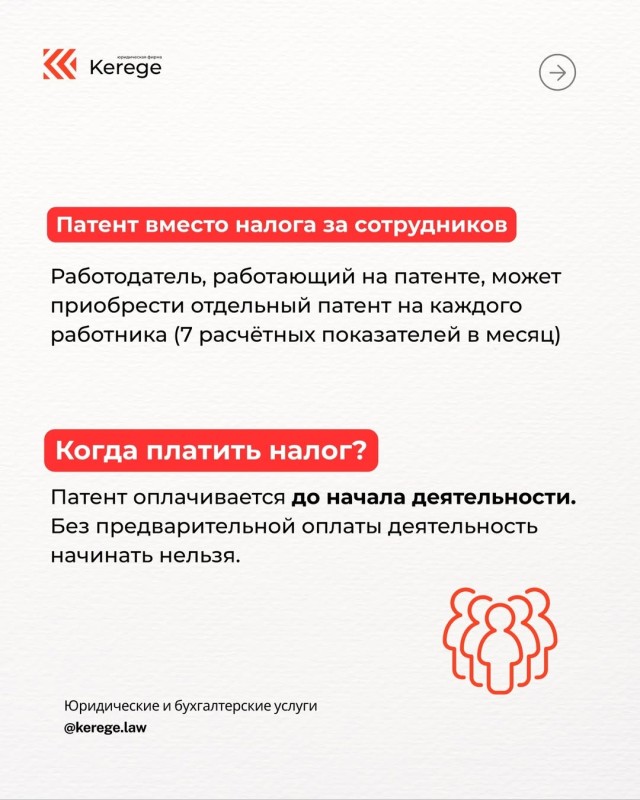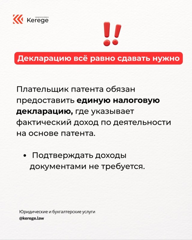 Патент облегчает ведение бизнеса, но не отменяет требований Налогового кодекса. Если вы хотите убедиться, что правильно применяете этот режим — специалисты Kerege Law помогут разобраться и сопровождать вашу деятельность.