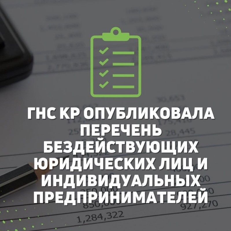 🇰🇬ГНС КР опубликовала перечень бездействующих юридических лиц и индивидуальных предпринимателей.