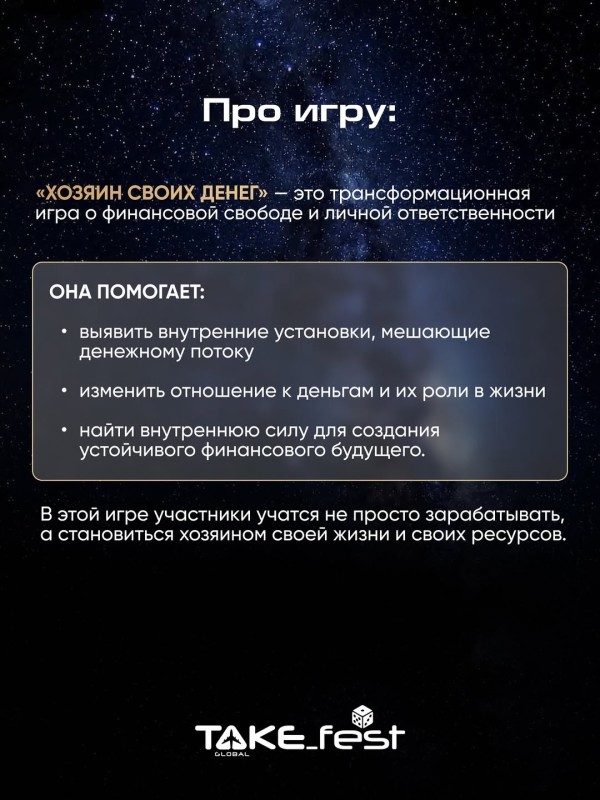 ХIII МЕЖДУНАРОДНЫЙ ФЕСТИВАЛЬ ТРАНСФОРМАЦИОННЫХ И БИЗНЕС-ИГР TAKE FEST