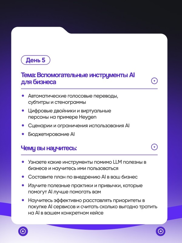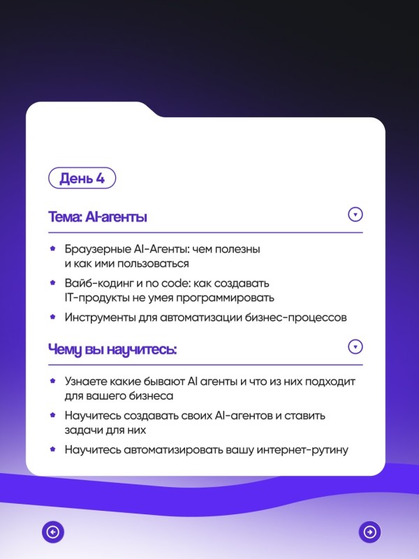 Вы получите практические навыки работы с нейросетями и десятками AI-инструментов, которые помогут делегировать рутину, ускорить процессы и вывести ваш бизнес на новый уровень.