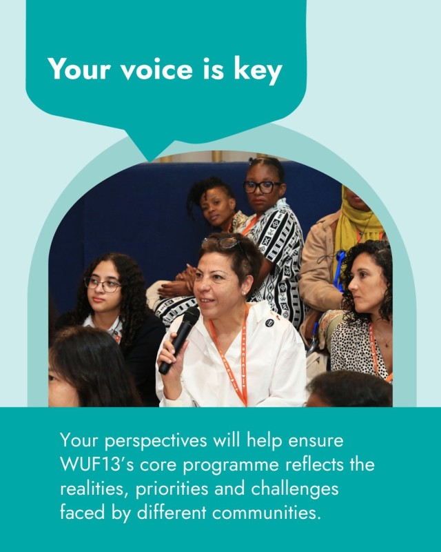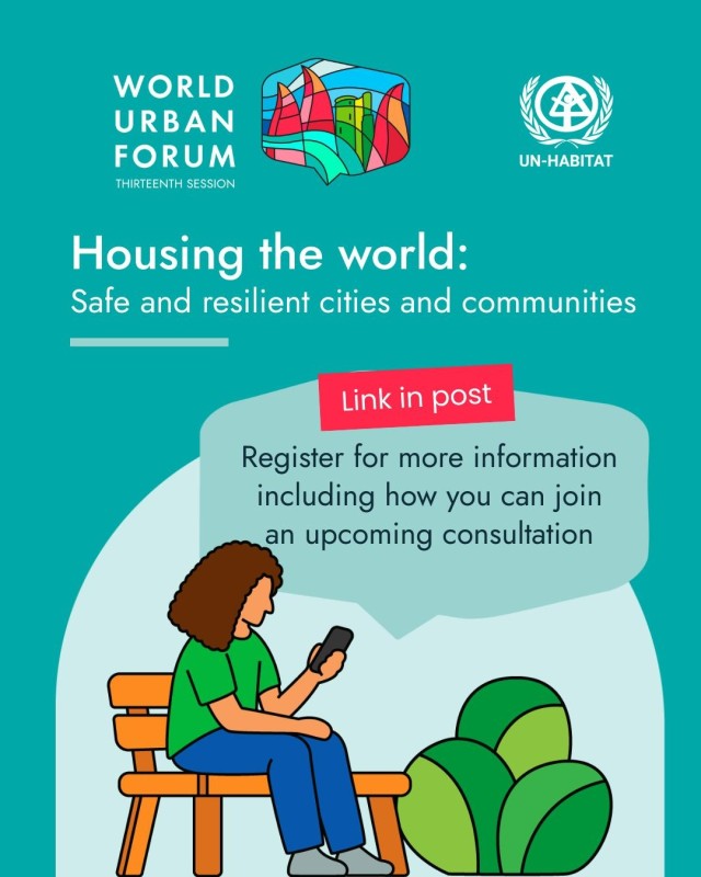 As preparations for WUF13 continue, we invite cities, organizations, networks, researchers, experts and changemakers to register in the UN-Habitat Stakeholder Engagement Database. By signing up, you’ll receive updates on upcoming consultation sessions and opportunities to engage with UN-Habitat. Your perspectives will help shape the programme and discussions at WUF13, and contribute to how UN-Habitat moves forward with its Strategic Plan 2026–2029.