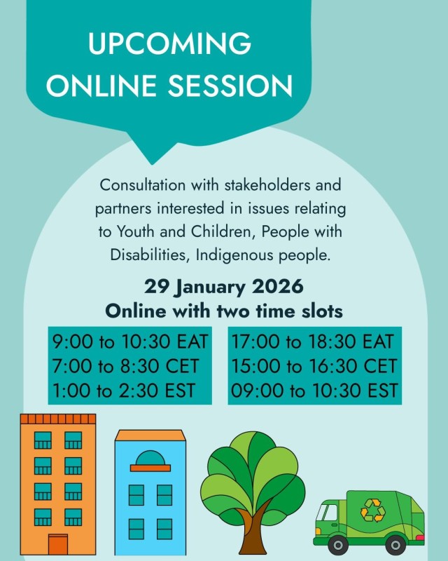 On 29 January, we are hosting two online stakeholder consultation sessions focused on issues relating to youth and children, people with disabilities, and Indigenous peoples. The sessions will take place at 09:00 and 17:00 EAT, providing space to share perspectives and contribute ideas to the main sessions of WUF13.