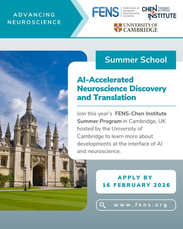 Join the 2026 #FENS–Chen Institute Summer Program on AI-Accelerated Neuroscience Discovery and Translation, hosted by the University of Cambridge and explore the future of neuroscience. 🔬