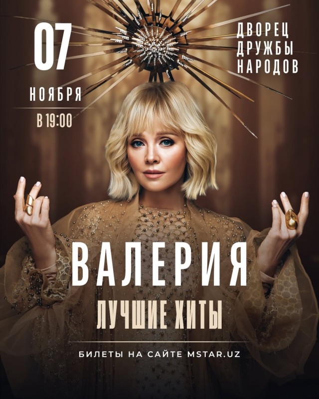 7 ноября в Ташкенте состоится долгожданный сольный концерт Валерии.