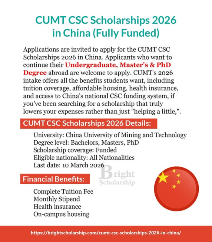 Стипендии CUMT CSC 2026 в Китае (полностью финансируемые)