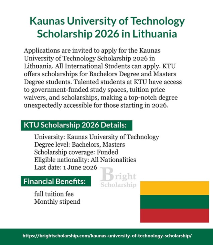 Kaunas University of Technology Scholarship 2026 in Lithuania (Funded)