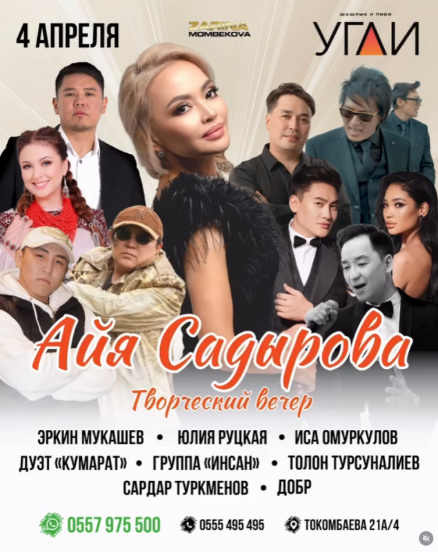 В этот вечер для вас будет петь очаровательная Айя Садырова под живое инструментальное сопровождение бэнд-группы 🎸🌟