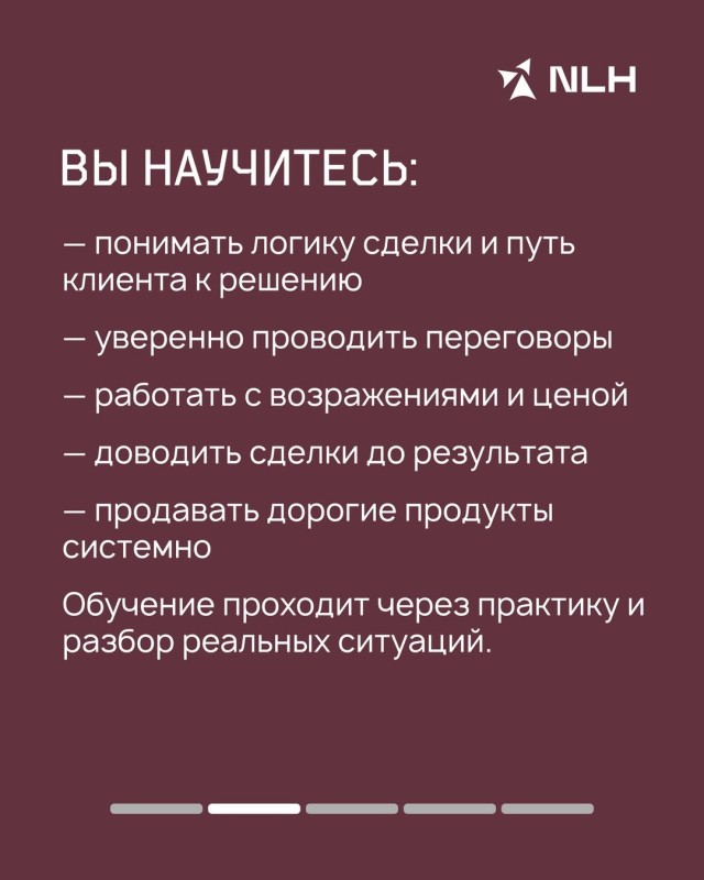 Курс построен на практике и реальных кейсах. Мы разберём полный цикл сделки — от первого контакта до принятия решения клиентом — и отработаем навыки, которые напрямую влияют на результат.