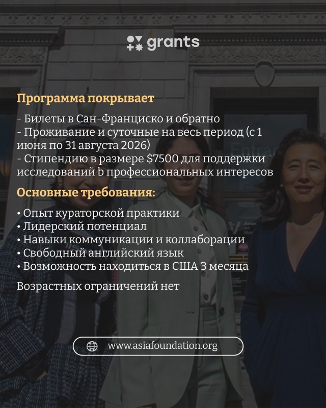 🎨 Это стипендия для обмена опытом между молодыми кураторами современного искусства, особенно тех, кто работает с азиатским и/или азиатско-американским искусством. Программа проводится в партнерстве с Asian Art Museum в Сан-Франциско 🇺🇸