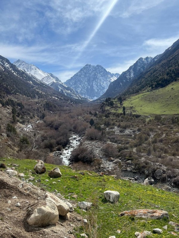 1️⃣ Мы погуляем по санаторию Иссык-Ата в горах, подышим свежим воздухом,
