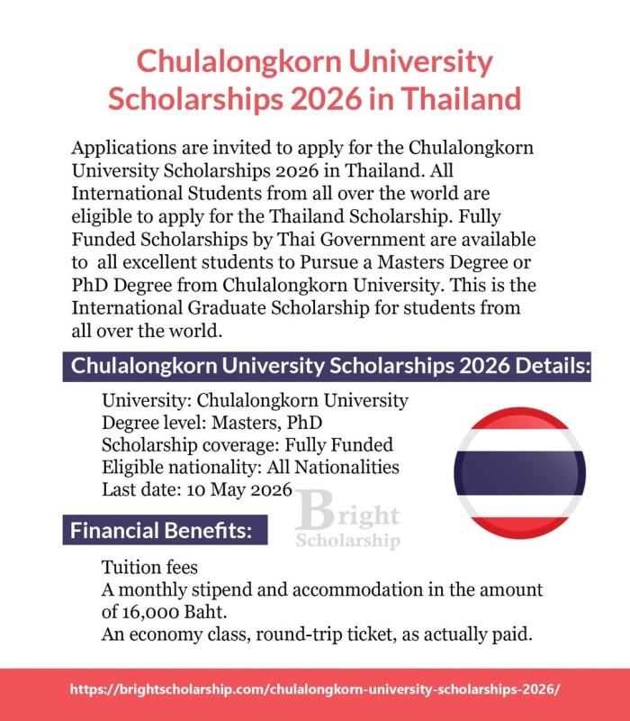 Chulalongkorn University Scholarships 2026 in Thailand (Fully Funded)