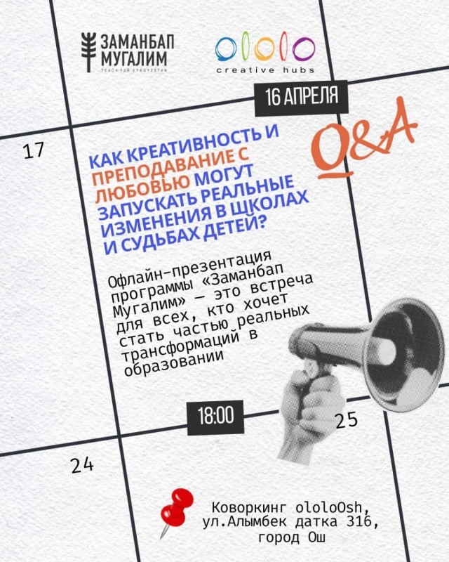 📍 Локация: Ололо Ош Ул Алымбек Датка 316 🕒 Дата и время: 16 апреля в 18.00