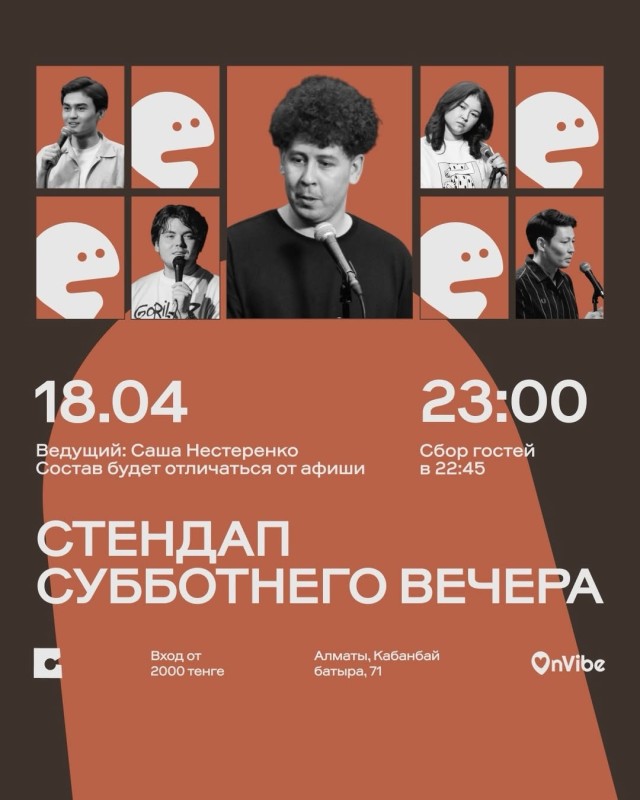 Стендап субботнего вечера – 18 апреля, в 23:00 🎙️