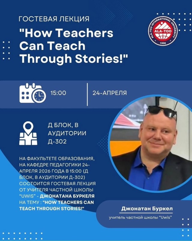 Кафедра педагогики приглашает студентов и преподавателей на гостевую лекцию, которая состоится 24 апреля 2026 года в 15:00 в аудитории Д-302 (D блок).
