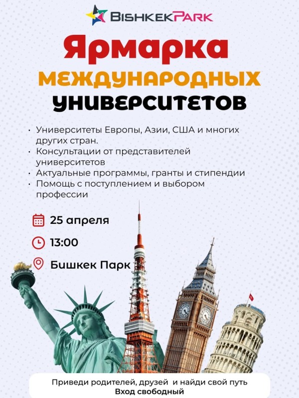25 апреля в Bishkek Park пройдёт Ярмарка международных университетов 🌍