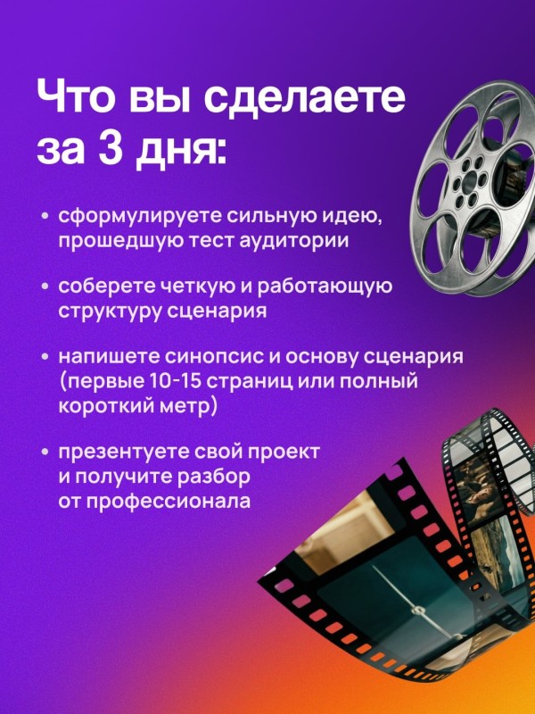 ✨ Поэтому мы запустили 3-дневный сценарный воркшоп, где вы: