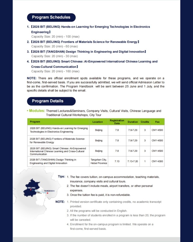 🌏 Добро пожаловать в Международную летнюю программу Пекинского технологического института 2026 года (кампус в Пекине), где вы сможете изучать передовые научные направления в условиях погружения в международную образовательную среду.