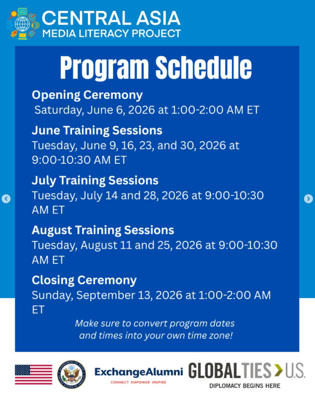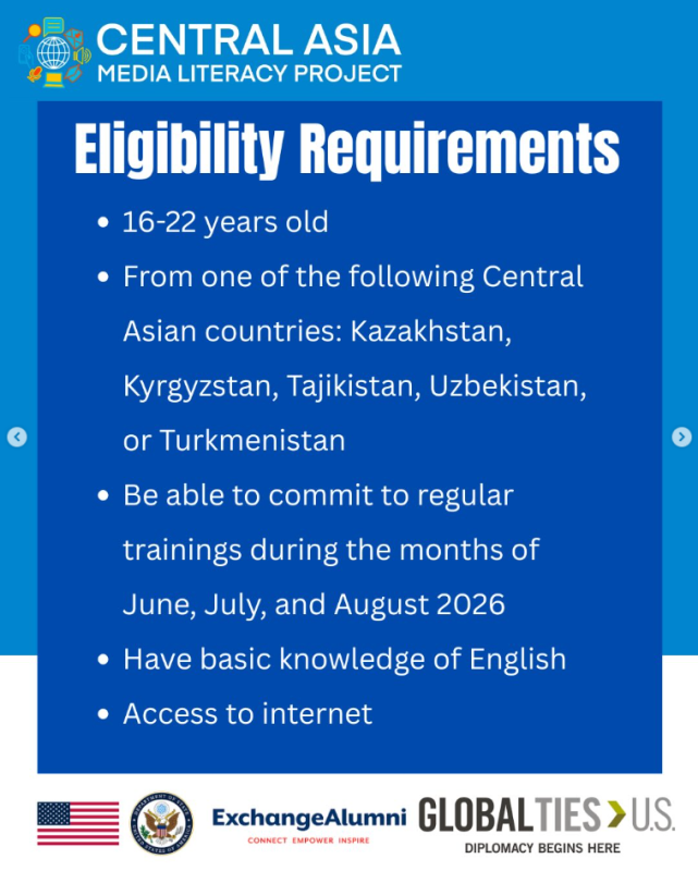 Приём заявок на участие в программе CAMLP 2026 открыт! Мы настоятельно рекомендуем всем молодым людям в возрасте 16-22 лет из Центральной Азии подать заявку до 17 мая 2026 года, используя ссылку в нашем профиле 🌟✨