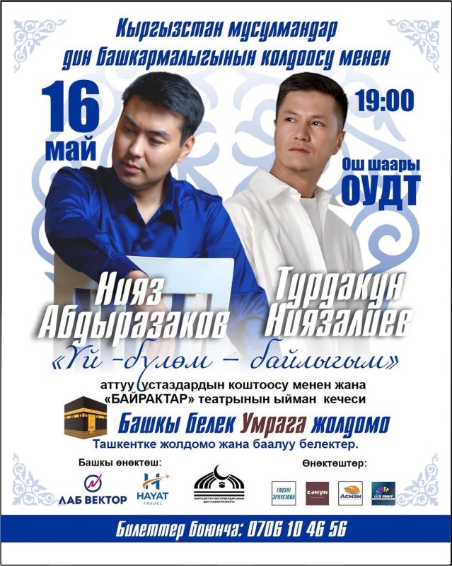 При поддержке Духовного управления мусульман Кыргызстана приглашаем вас на особенное мероприятие, организованное театром «БАЙРАКТАР».