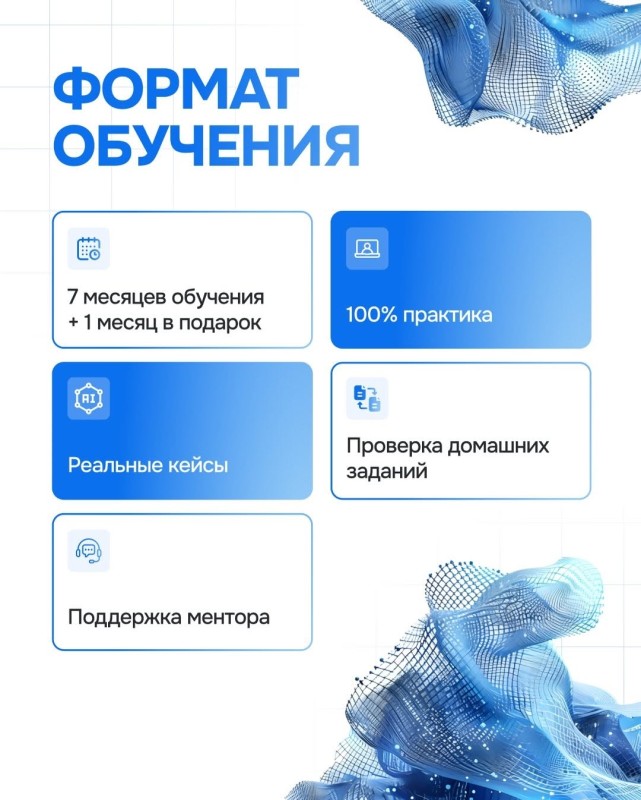 реальные кейсы, проверка домашних, поддержка ментора.