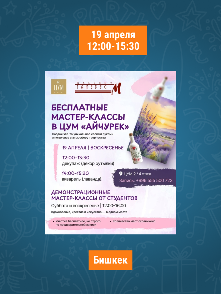 Куда сходить на выходных 18–19 апреля? | Афиша событий Бишкек