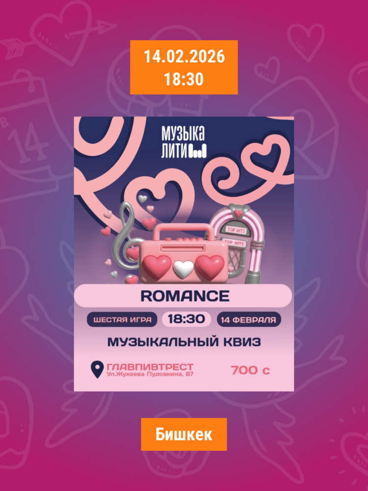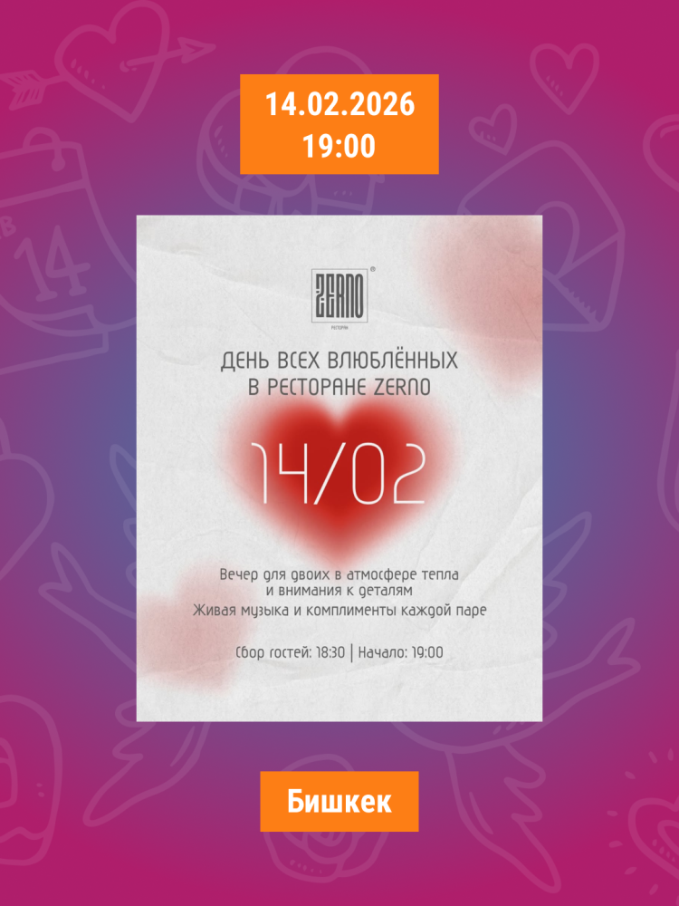 Лучшие места и мероприятия в Бишкеке для 14 февраля со своей половинкой