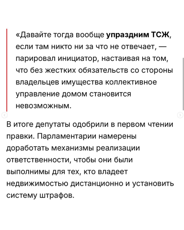 — Комитет ЖК по промышленной политике, транспорту, топливно-энергетическому комплексу, архитектуре и строительству рассмотрел в первом чтении поправки в законопроект, касающийся деятельности ТСЖ. За несвоевременную уплату взносов предлагается ввести систему штрафов.