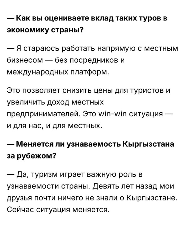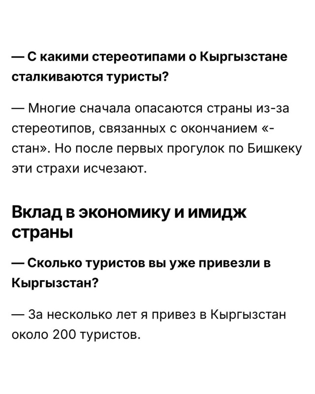 — Главное отличие Кыргызстана — его аутентичность. Страна пока не подверглась сильной «вестернизации» и остается живой, настоящей и открытой для путешественников.
