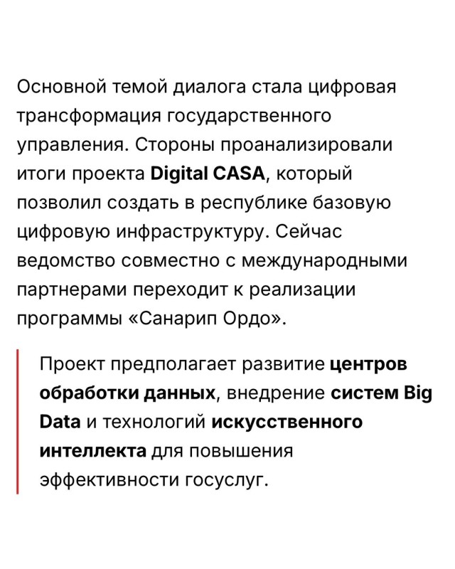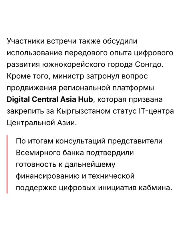 Министр финансов КР Руслан Суйналиев 15 апреля в Вашингтоне провел встречу с вице-президентом Группы Всемирного банка по цифровым технологиям Санбу Кимом для обсуждения проектов по развитию искусственного интеллекта и дата-центров. Переговоры прошли на полях Весенних совещаний МВФ и Всемирного банка.
